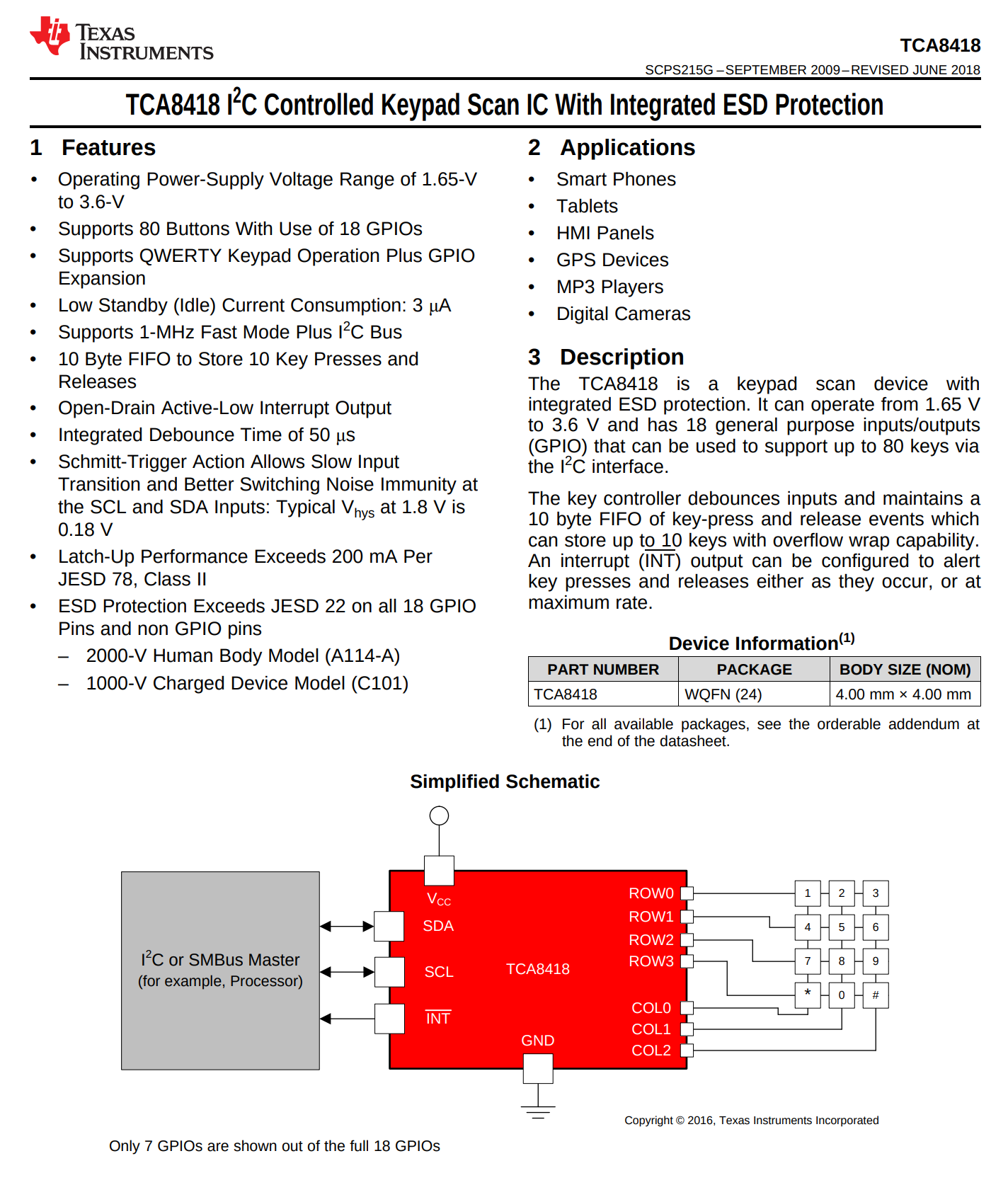Keyboard Scan I2C Chip TCA8418