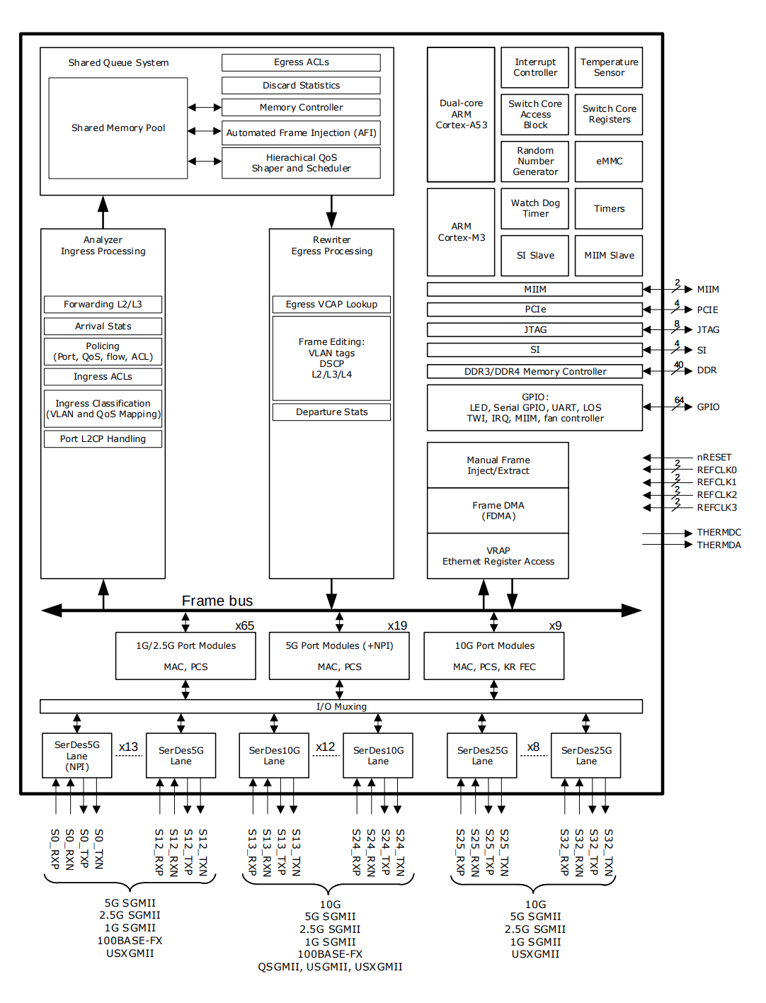 Hardened functions: SPI, 2x I2C, timer/counter, and oscillator
